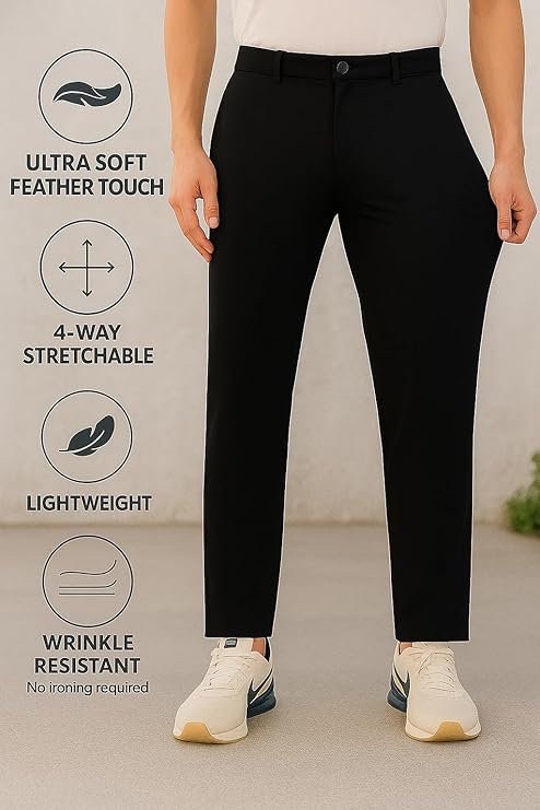 Premium 4-Way Stretchable Formal Pants | Stylish Slim Fit Multi-Purpose Trousers | Business Casual Office/Anytime Wear | Ultra Soft Feather Touch Chinos | Athleisure Sunscreen Fabric